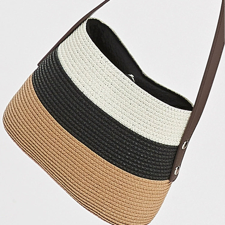 Clean lines of sky-washed blue and raw umber evoke simplicity. Handwoven raffia in natural fibers eschews ornate details, highlighting organic texture and earthy hues. Designed for various outings, this tote embodies coastal elegance, celebrating mindful craftsmanship. Carry nature's essence with practical and understated artistry.